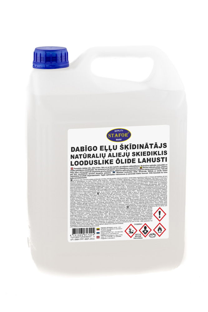 Bīstamības kategorijas: Flam.liquid 3. Acute tox 4 (inhalation; dermal; oral). Asp. Tox 1. Eye irrit. 2. Skin irrit. 2. Skin sens. 1. Aquatic Chronic 2. Signālvārds: Bīstami. Satur: Terpentīnu. Produkta iedarbības raksturojums: H226- Uzliesmojošs šķidrums. H332-Akūta toksicitāte ieelpojot. H312-Akūta toksicitāte caur ādu. H302-Akūta toksicitāte caur muti. H304-Bīstams ieelpojot. H319-Acu kairinājums. H315-Kairinošs ādai. H317-Sensibilizācija nonākot saskarē ar ādu. H411-Viela bīstama ūdens videi. Drošības prasību apzīmējumi: P210 – nelietot vietās, kur ir sastopams karstums, dzirksteles, atklāta uguns, statiskā enerģijas izlāde, karstas virsmas. Nesmēķēt; P280 – Izmantot aizsargcimdus, aizsargdrēbes, acu aizsargus,  sejas aizsargus; P301+P330+P331+P310 – NORĪŠANAS GADĪJUMĀ: Izskalot muti. Neizraisīt vemšanu. Nekavējoties sazināties ar SAINDĒŠANĀS CENTRU vai ārstu; P302+P352+P362+P332+P313 – SASKARĒ AR ĀDU: nomazgāt ar lielu ziepju un ūdens daudzumu. Novilkt piesārņoto apģērbu un pirms atkārtotas lietošanas izmazgāt. Ja rodas ādas iekaisums: lūdziet mediķa palīdzību; 305+P351+P338+P337+P313 – SASKAĒ AR ACĪM: uzmanīgi izskalot ar ūdeni vairākas minūtes. Izņemt kontaktlēcas, ja tās ir ievietotas un ja to ir viegli izdarīt. Turpināt skalot. Ja acu iekaisums nepāriet: lūdziet mediķu palīdzību; P501 – Atbrīvoties no satura/tvertnes saskaņā ar vietējiem, reģionāliem un starptautiskiem noteikumiem.